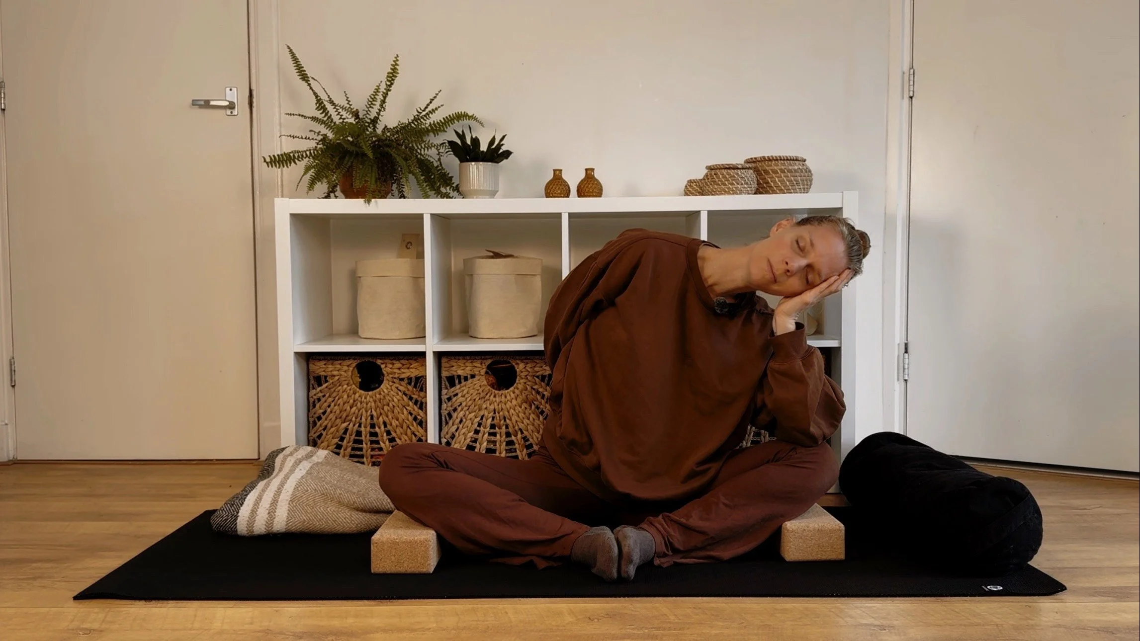 Geen haast om op tijd bij de yogales te komen, geen vast zitten aan het schema van een yogastudio en niet door weer en wind te hoeven gaan. rol gewoon je mat uit wanneer het voor jou passend voelt. het enige wat je nodig hebt is de keuze om ruimte te maken voor jezelf, dan begeleiden deze retraite momenten jou in de rest.
